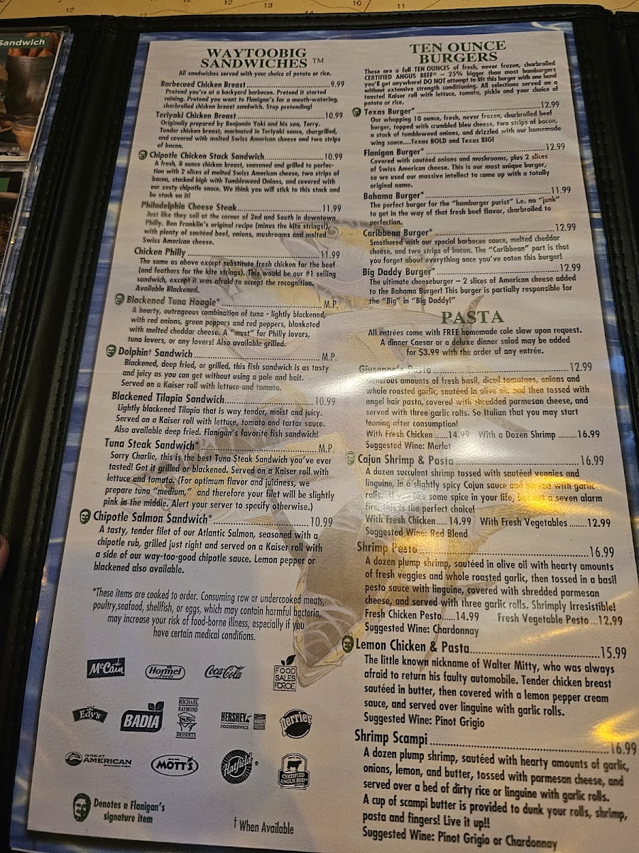 Flanigan's menu features a delightful array of dishes that cater to every palate. Start your meal off right with their famous New England clam chowder, a creamy, hearty blend that's just the right amount of rich, paired perfectly with oyster crackers. It's a robust appetizer that will set the tone for the meal ahead.
